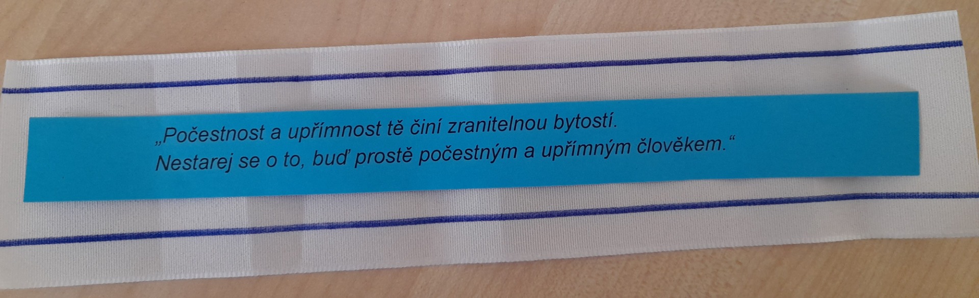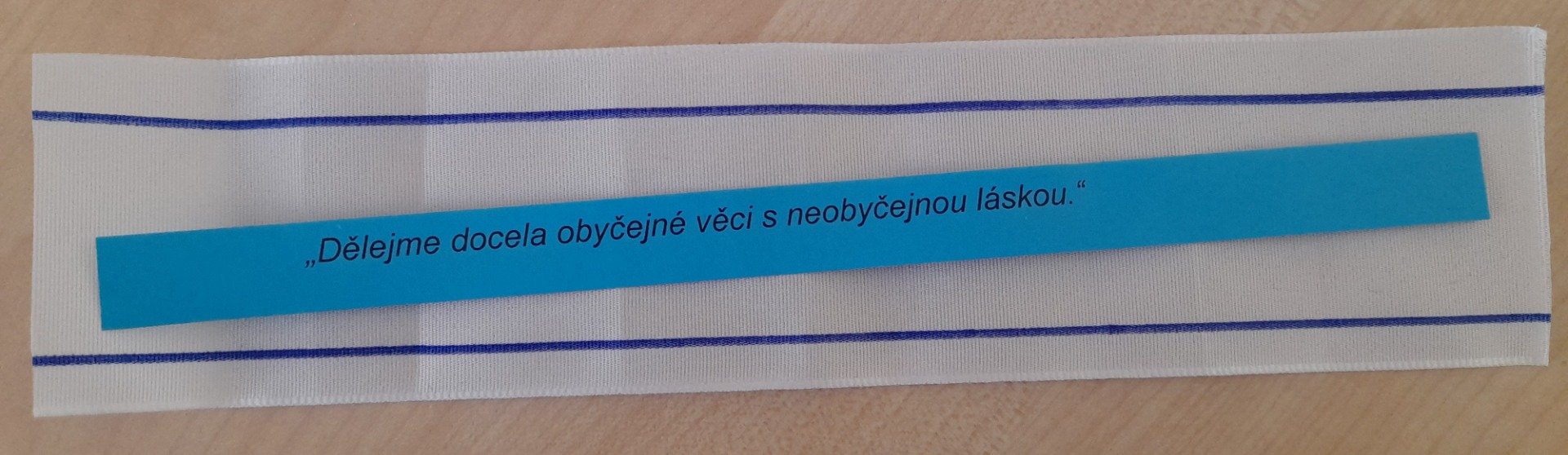- bílé sárí s modrými pruhy u okrajů - zvolený šat Matky Terezy