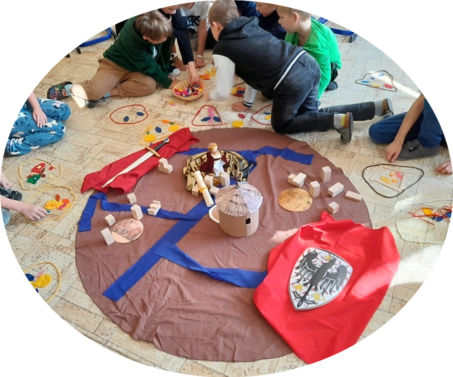 - program vyžaduje usazení žáků v kruhu (na židlích, popř. na koberci) s dostatečným volným prostorem uprostřed, kde se postupně tvoří obraz z didaktického materiálu